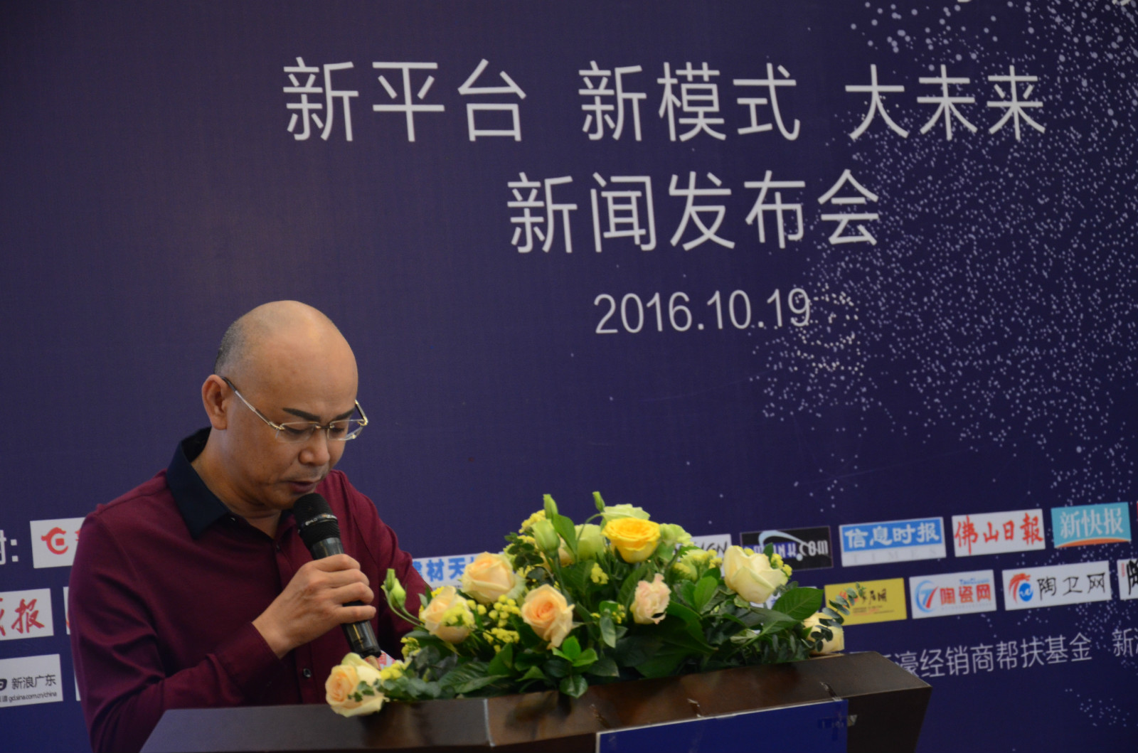 10月19日上午,新濠大理石瓷磚“新平臺 新模式 大未來”新聞發布會在佛山新濠展廳召開。華夏銀行佛山分行副行長劉振林、金融部總經理謝文斌,佛山陶瓷行業協會秘書長羅青,昊晟集團總經理杜湛權、財務總經理羅燕清,新濠大理石瓷磚品牌營銷總經理朱國亮、副總經理柯寓國,產品事業部策劃總監孫慶,以及來自行業的近30家主流媒體記者等出席發布會。