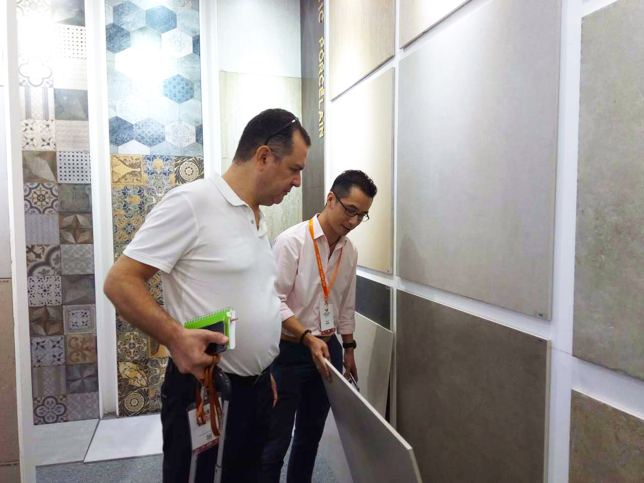 今日是陶博會(huì)第四天,天氣預(yù)告說(shuō)臺(tái)風(fēng)暴雨將至,全市小學(xué)幼兒園都停課了。上午和楊勁文社長(zhǎng)一起去逛中國(guó)陶瓷城展館,看到人氣不錯(cuò)真是出乎意料。跟著技術(shù)控去看產(chǎn)品就是大不同,許多技術(shù)工藝的訣竅和市場(chǎng)行情都弄懂了。騰達(dá)的余總,加西亞的謝潔美,燊科的梁智玲,居壁的肖斌……很多都是楊社長(zhǎng)的老同事老朋友,他們提供的行業(yè)資訊當(dāng)然都是很真實(shí)很可靠滴。