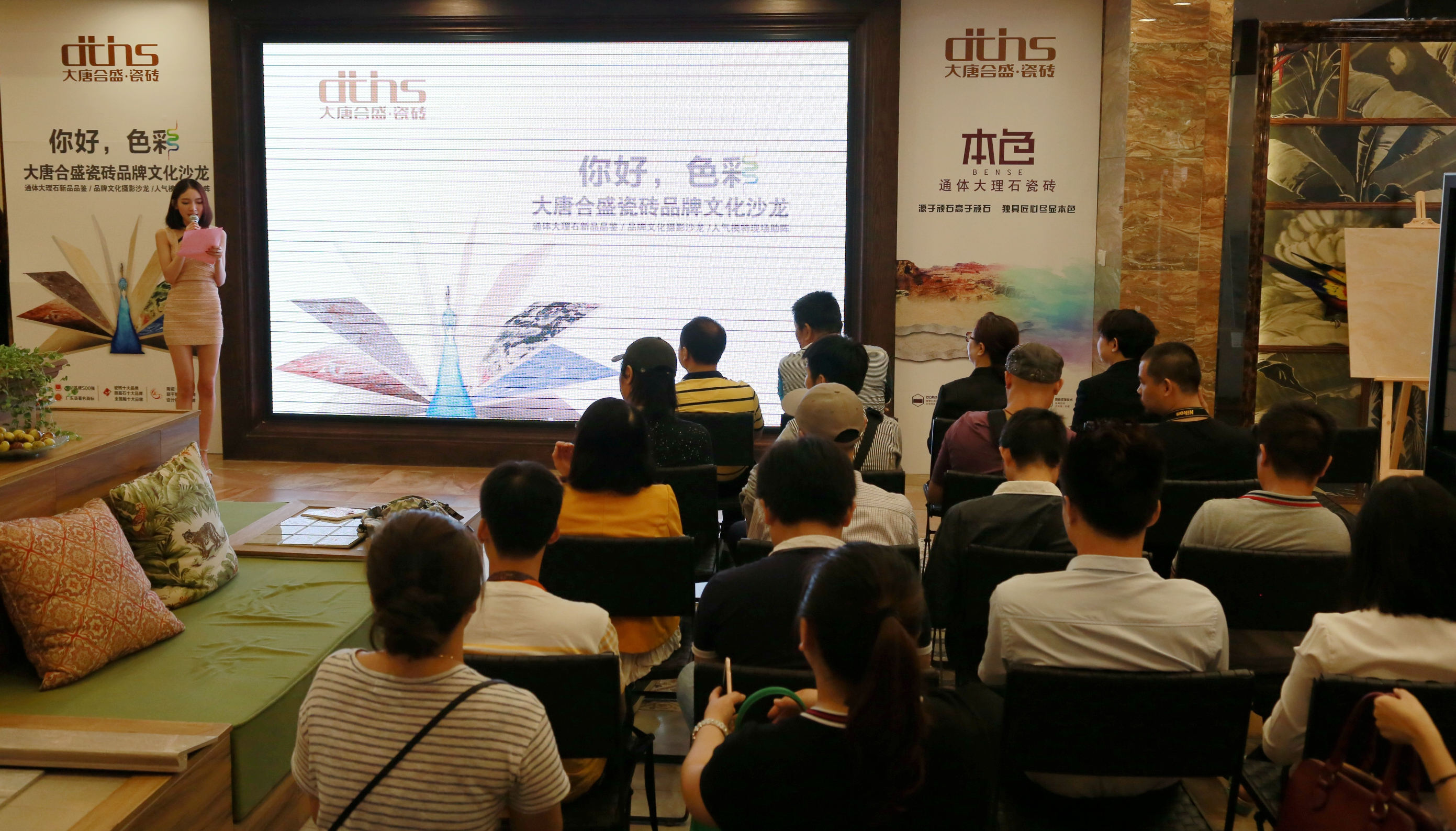 10月19日,大唐合盛瓷磚總部展廳“唐宮”掀起一場(chǎng)浪漫與時(shí)尚的家居藝術(shù)視覺盛宴。大唐合盛“本色”系列通體大理石瓷磚新品發(fā)布及“你好,色彩”品牌文化攝影沙龍同期舉行,更有人氣模特現(xiàn)場(chǎng)助陣,由媒體、設(shè)計(jì)師等組成的資深攝影愛好者們與國(guó)家級(jí)攝影大師張?jiān)C褚黄鹜ㄟ^鏡頭捕捉家居藝術(shù)的色彩與形式構(gòu)成的視覺世界,為28屆陶博會(huì)抹上一片彩色。