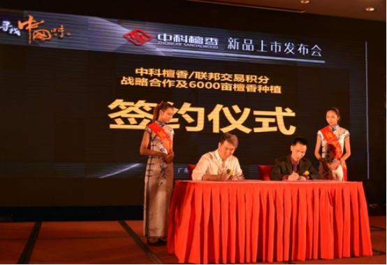為了實現營銷模式轉型,提高中科檀香發展起點,中科檀香與union coin聯邦積分強強聯手,形成戰略合作聯盟。在現場,聯邦認購了中檀6000畝檀香種植養育基地以及2000萬原始股,并進行了簽約儀式。